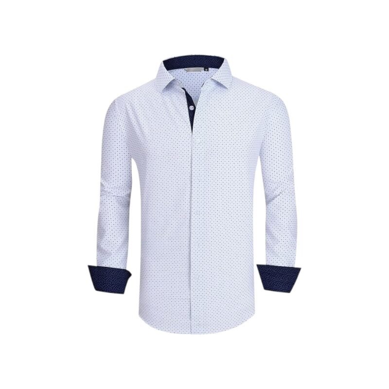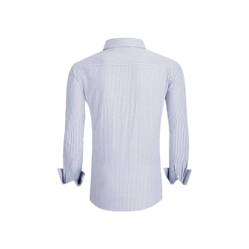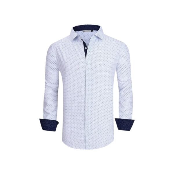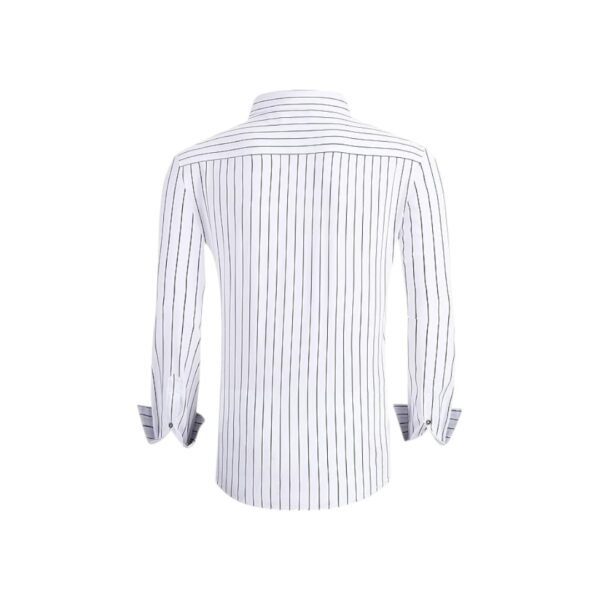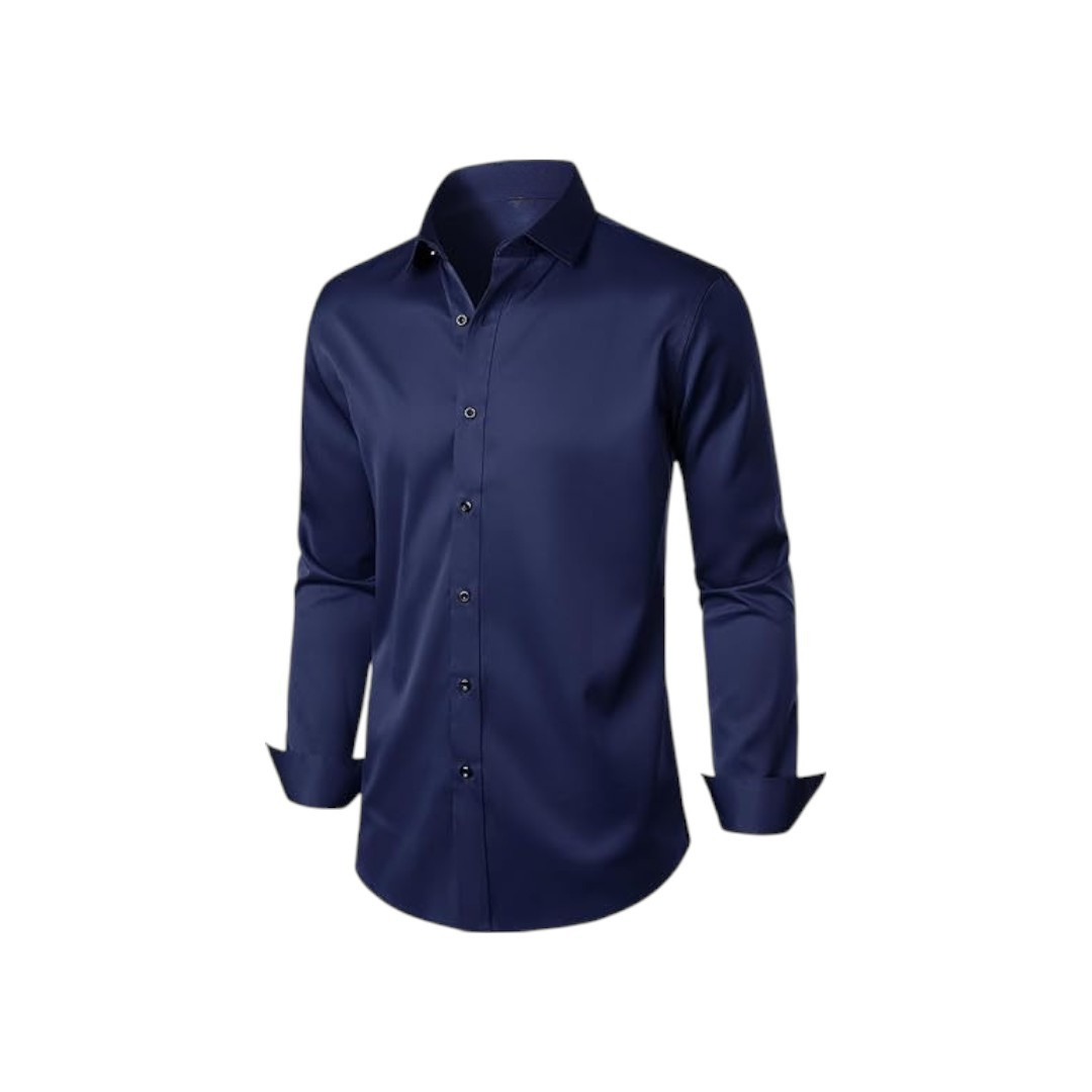 Add a refined touch to your wardrobe with this men’s dress shirt, designed for comfort, flexibility, and easy care. Made from a durable polyester blend with 5% spandex, the fabric offers gentle stretch—especially across the shoulders—for enhanced comfort and mobility. The smooth, slightly lustrous surface gives the shirt a polished look, ideal for special occasions such as weddings, evening events, and celebrations.
